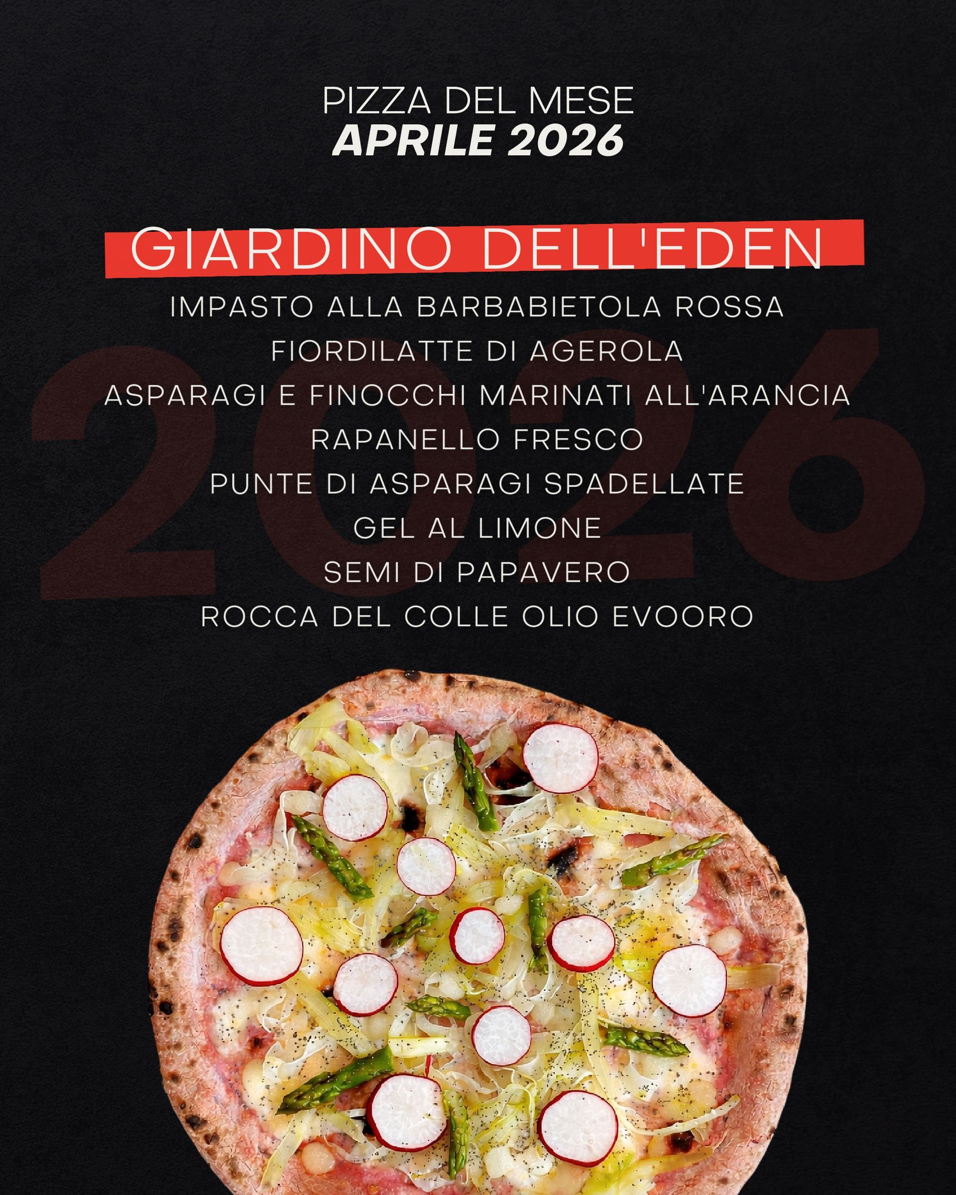 Aprile è Giardino dell’Eden 🌸🍕 Una pizza che gioca tra freschezza e note vivaci, con un equilibrio che sorprende! • Impasto alla Barbabietola Rossa • Fiordilatte di Agerola • Asparagi e Finocchi marinati all’Arancia • Rapanello fresco • Punte di Asparagi spadellate • Gel al Limone • Semi di Papavero • Rocca del Colle Olio Evooro Non segue uno schema, ti fa scoprire il paradiso al primo morso! 😍 #LAnonimo #aprile #pizza #pizzalover #foodieButton